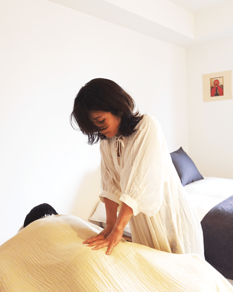 体や心をほぐすだけでなく、オーラやエーテル体といった目に見えない領域にまでアプローチを施す。